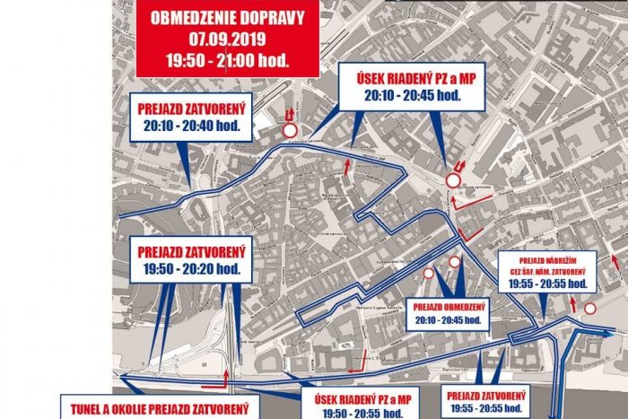 „Doprava bude riadená a usmerňovaná príslušníkmi dopravnej polície v závislosti od priebehu pelotónu bežcov. Obmedzenia na jednotlivých úsekoch a križovatkách by mali trvať približne 20 až 30 minút,“ spresnilo mesto. Na výjazdy z bočných ulíc budú dohliadať mestskí policajti a organizátori.