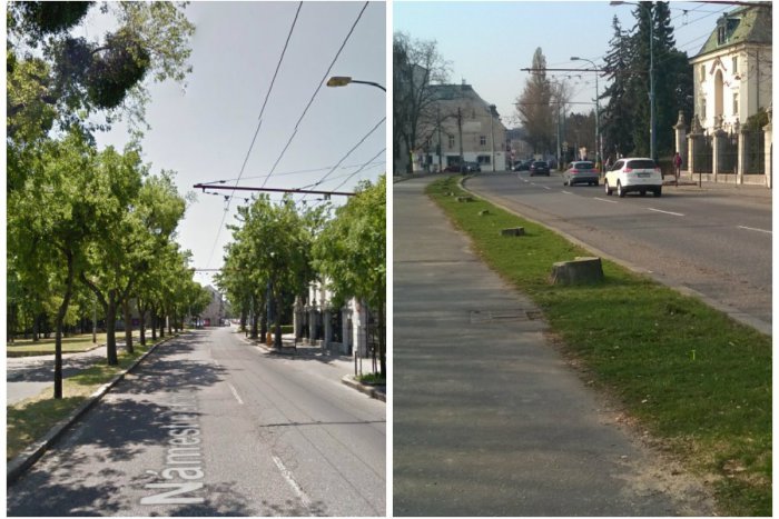 Stromy, ktoré dlhé roky skrášľovali cestu pred Úradom vlády pri Námestí slobody sú preč. Mesto ich vyrúbalo a na ich mieste nasadí nové.