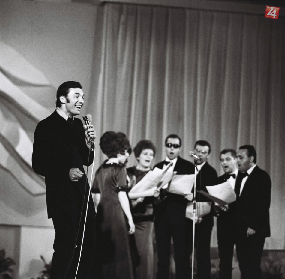 Na archívnej snímke z 16. júna 1968 spieva Karel Gott pri vystúpení na galakoncerte v Bratislave. FOTO TASR - Magda Borodáčová
