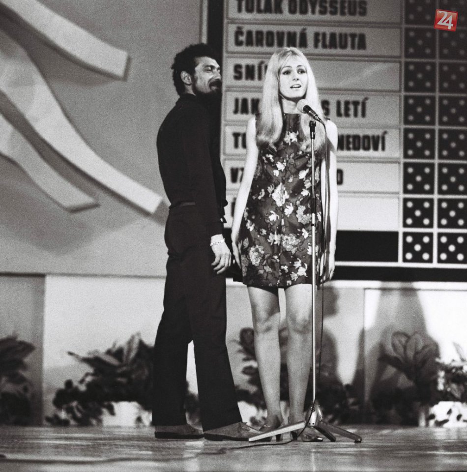 Na archívnej snímke z 13. júna 1968 spievajú Helena Vondráčková a Waldemar Matuška pesničku s názvom " To sa nikdy nedozvie FOTO TASR - Magda Borodáčová