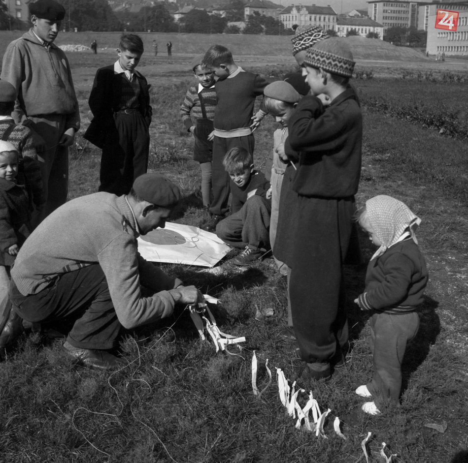 Na archívnej snímke z 13. októbra 1955 púšťanie šarkana na jeseň Bratislave. FOTO TASR - Viliam Přibyl