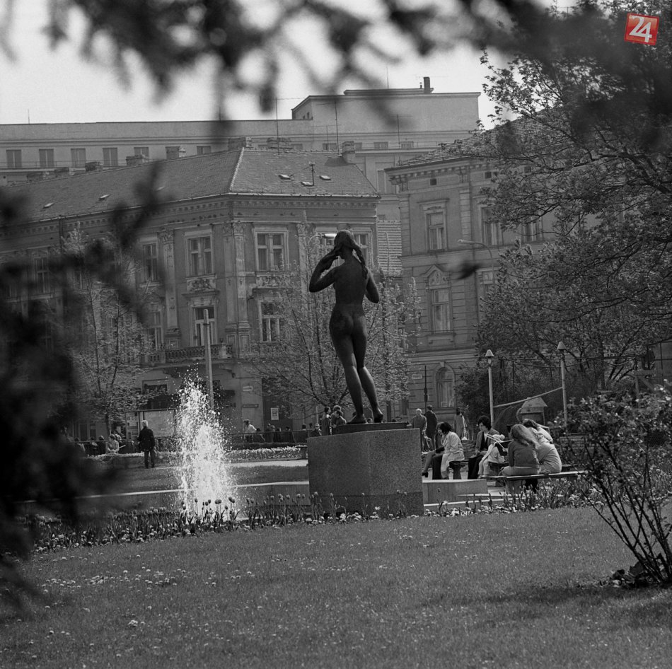 Na archívnej snímke z 20. apríla 1972 fontána Poézia (Marína) na Šafárikovom námestí v Bratislave. FOTO TASR - Zlatica Repová