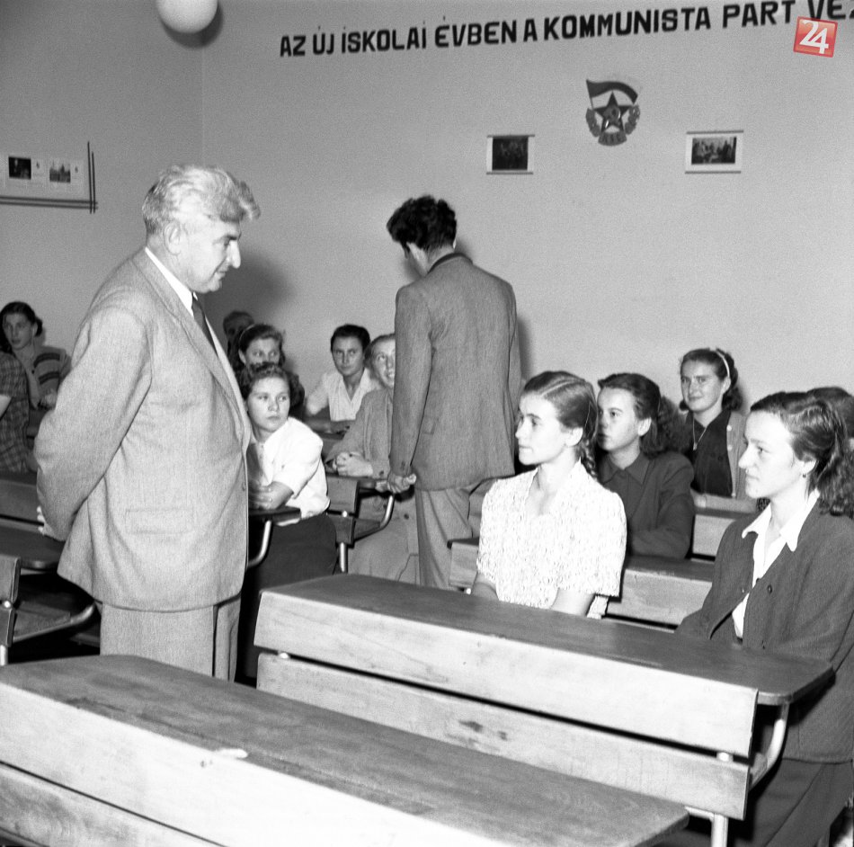 Na archívnej snímke z 1. septembra 1951 generálny konzul Maďarskej ľudovej republiky Jozef Füredi počas návštevy maďarskej triedy pri príležitosti slávnostného otvorenia nového školského roka na slovenskom a maďarskom pedagogickom gymnáziu.