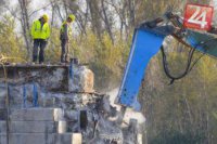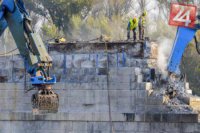 Fotografie z rozoberania tretieho piliera Starého mosta. Pilier demontujú postupne a opatrne, aby jeho kamene mohli byť použité opäť pri výstavbe nového Starého mosta.