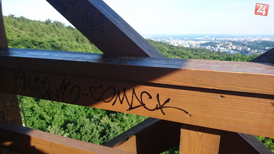 Galéria k článku Foto: Obľúbenú rozhľadňu pod Kamzíkom "obdarili" vandali nechutnými čmáranicami