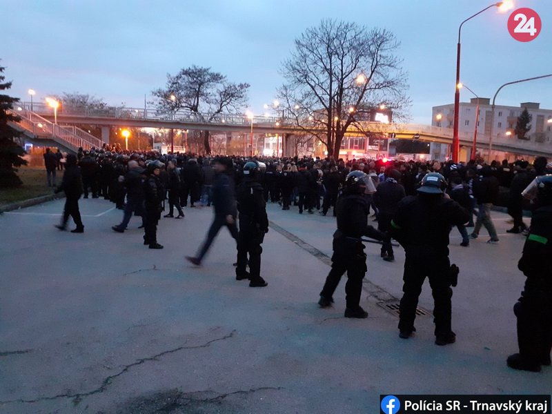 Galéria k článku Fanúšikovia napadli posádku auta: Derby Trnavy so Slovanom sa nezaobišlo bez incidentu