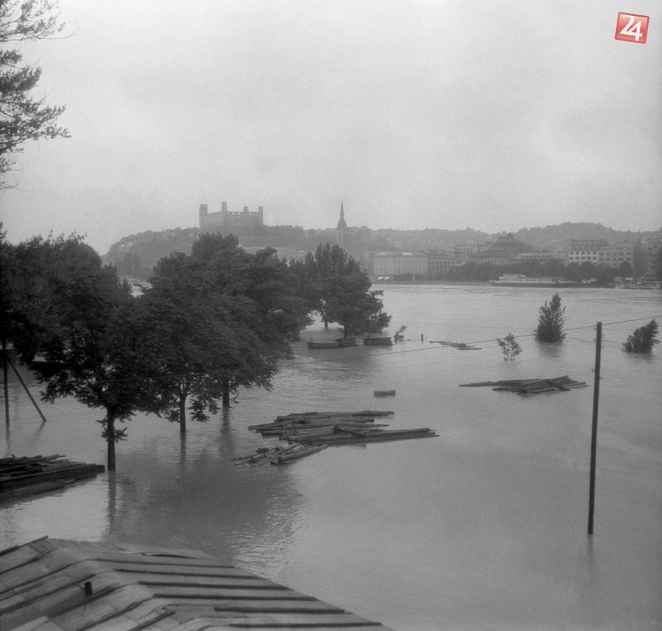 Záplavy v roku 1956: Rozvodnený Dunaj prekonal v Bratislave hranicu 900 metrov.