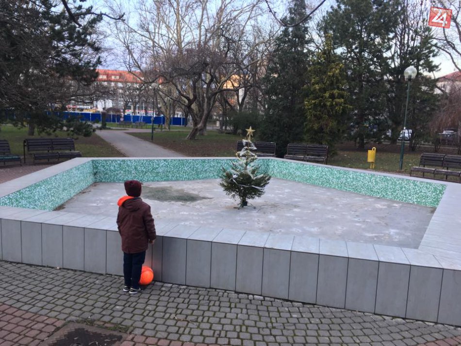 V zime fontánu zdobil malý vianočný stromček.