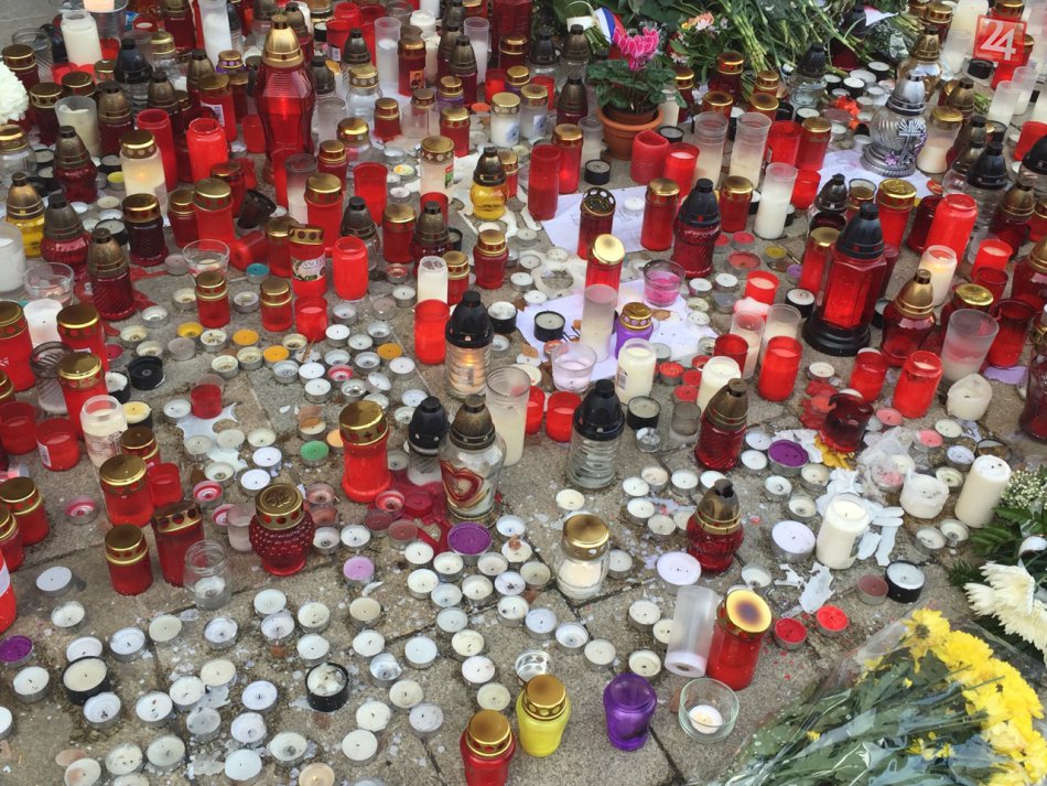 Galéria k článku OBRAZOM: Aj Bratislava vyjadruje súcit s Parížanmi. Francúzsku ambasádu zaplavujú sviečky, kvety aj odkazy