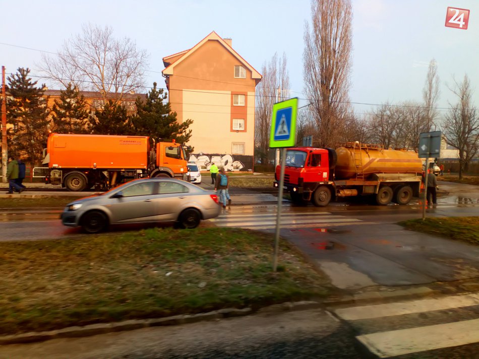 Galéria k článku Havária vodovodu v Krasňanoch: Nejazdia električky, kolabuje doprava