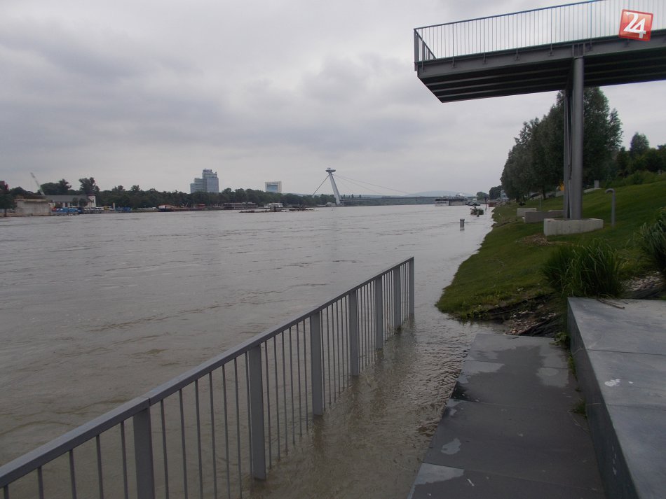 Galéria k článku Zvýšená hladina Dunaja zaplavila základy piliera rozostavaného Starého mosta