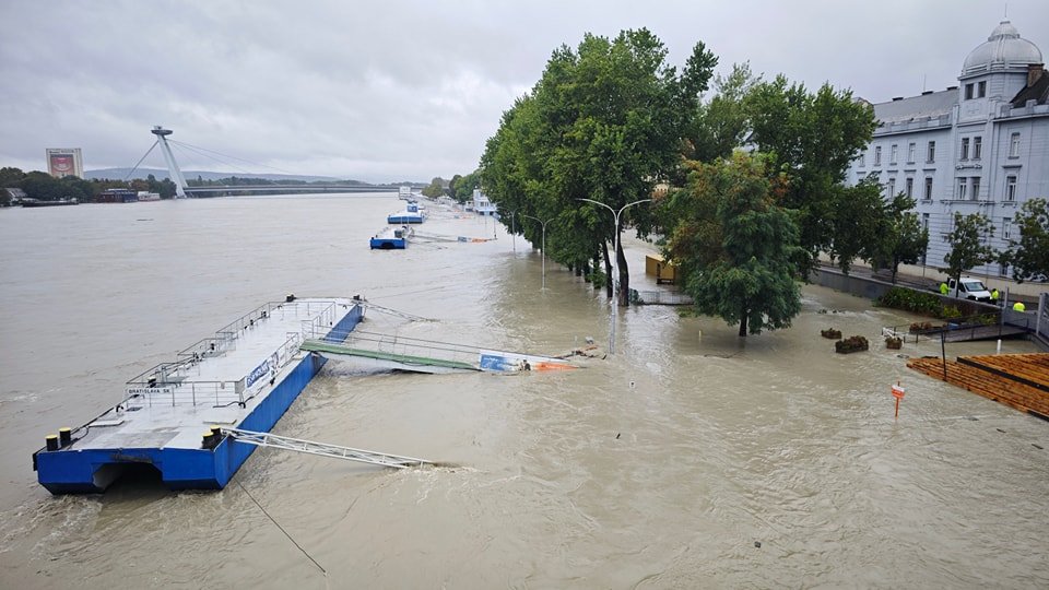 Galéria k článku Dunaj v noci kulminoval s výškou 970 centimetrov: Škody podľa Tarabu dosiahli 20 MILIÓNOV