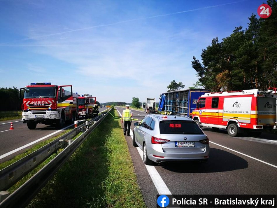 Galéria k článku Diaľnica D2 v smere do Bratislavy je po požiari kamióna opäť prejazdná