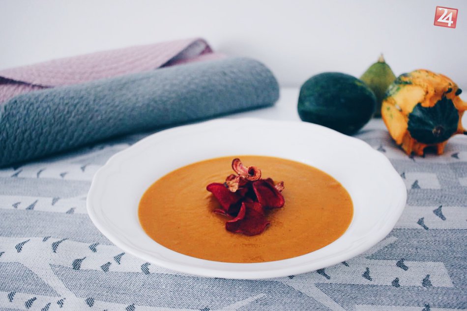 Galéria k článku Redakcia radí: Krémová polievka z pečenej tekvice s cviklovými čipsami