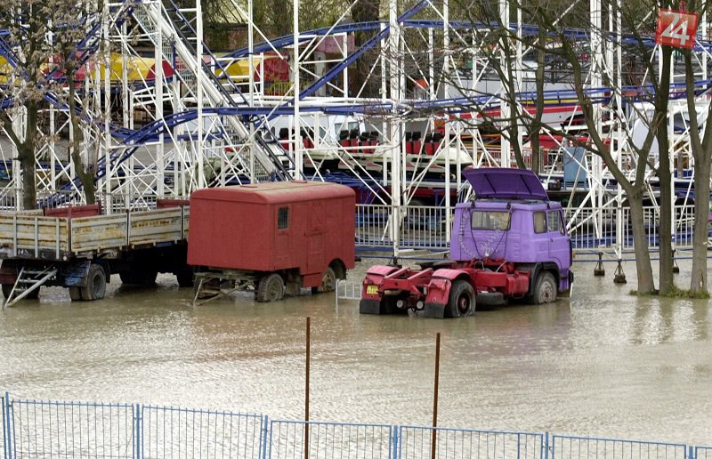 Zatopený bratislavský lunapark 23. marca 2002.