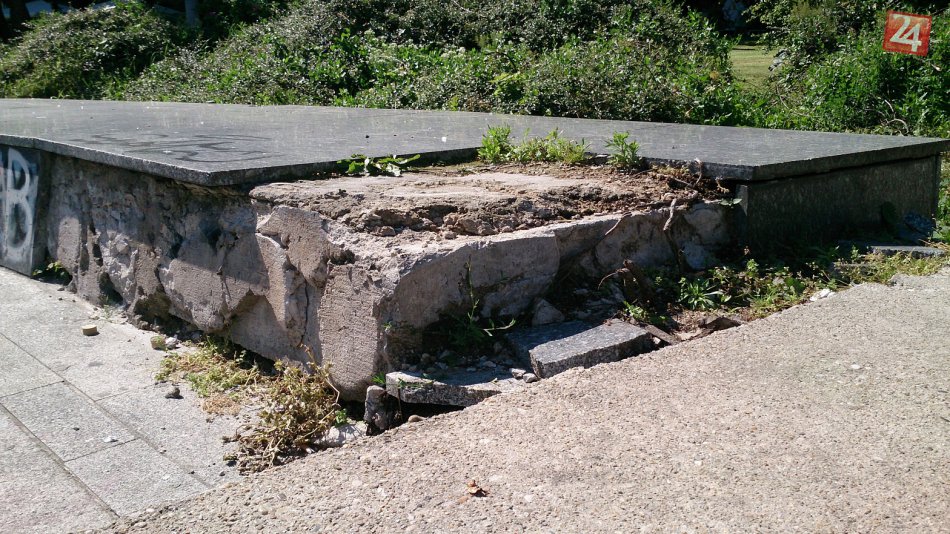 "Pookusované" dlaždice.