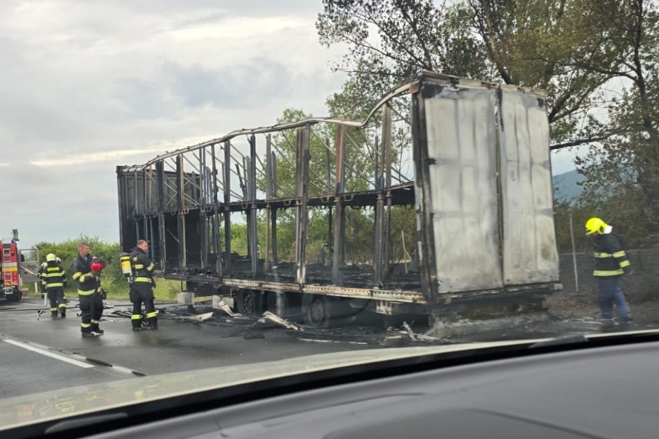 Galéria k článku Hustý DYM bolo vidieť už z diaľky: Na diaľnici D2 horel kamión! FOTO
