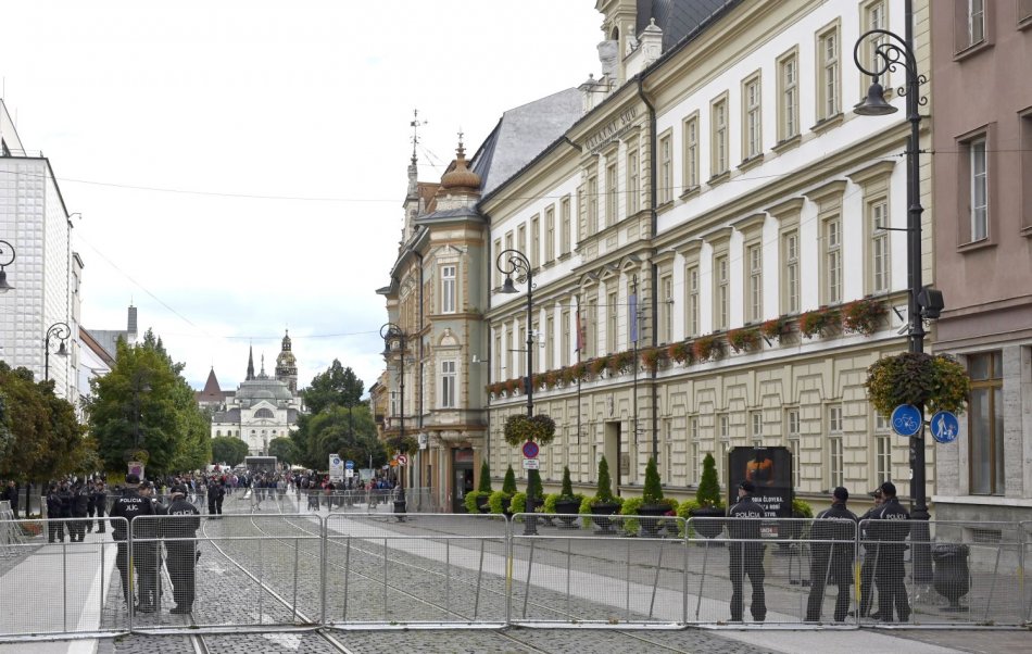 Policajné zátarasy pred budovou Ústavného súdu SR v Košiciach