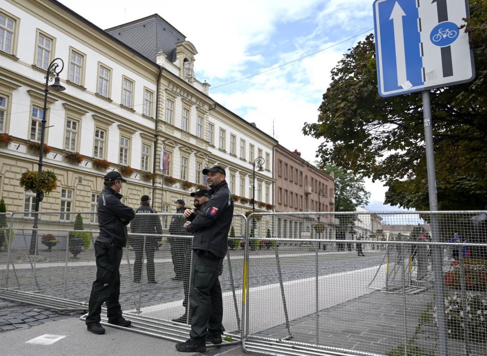 Policajné zátarasy pred budovou Ústavného súdu SR v Košiciach