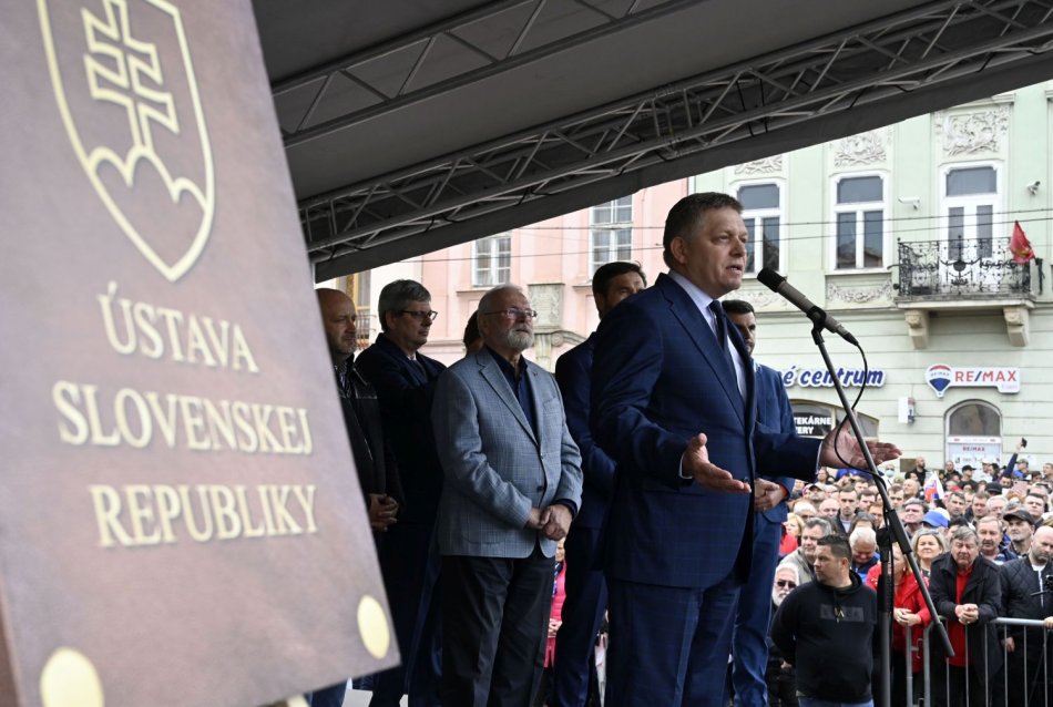 Robert Fico počas príhovoru na proteste na Hlavnej ulici v Košiciach