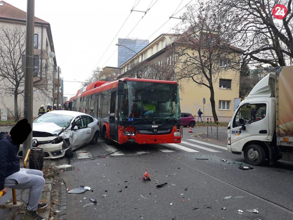 Galéria k článku V Bratislave sa zrazil trolejbus s nákladným autom, sú aj zranení! FOTO