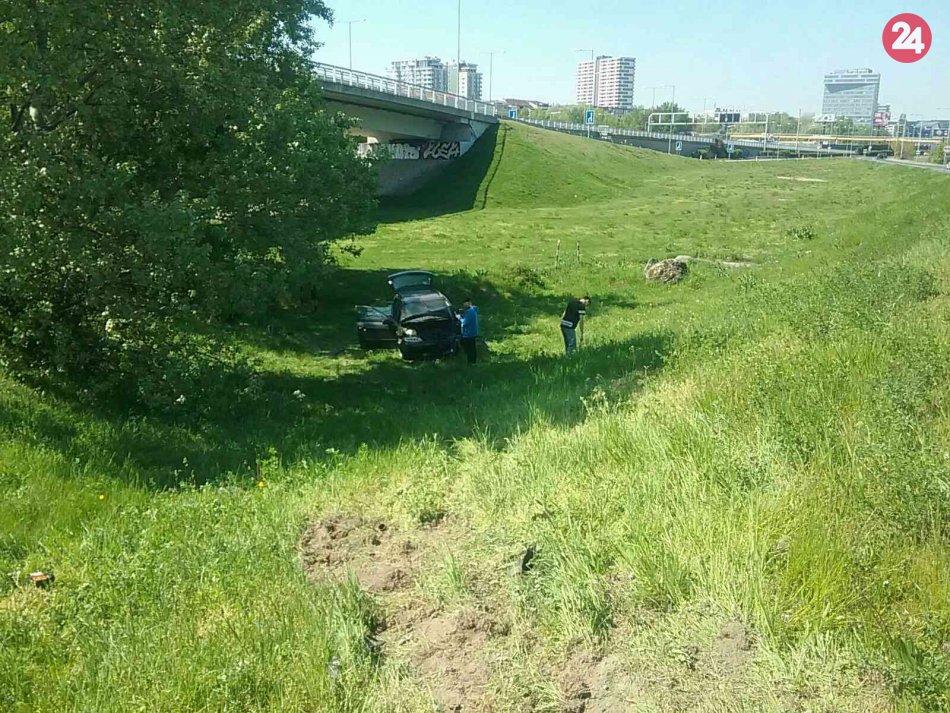Galéria k článku FOTO: Na zjazde z bratislavského Prístavného mosta auto vyletelo z cesty
