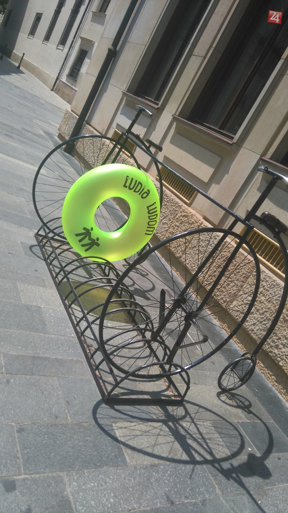 Zaparkované koleso pre budovou magistrátu hlavného mesta