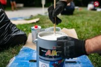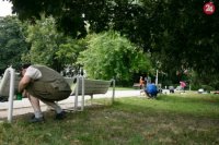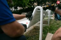 Natieranie lavičiek v Medickej záhrade