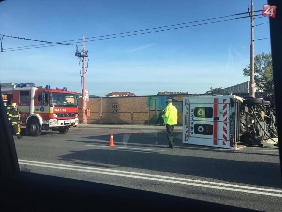 Galéria k článku Pri dopravnej nehode v Ružinove sa prevrátila sanitka