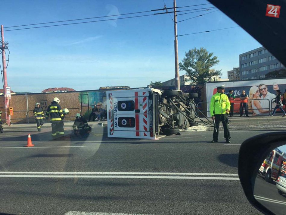 Galéria k článku Pri dopravnej nehode v Ružinove sa prevrátila sanitka