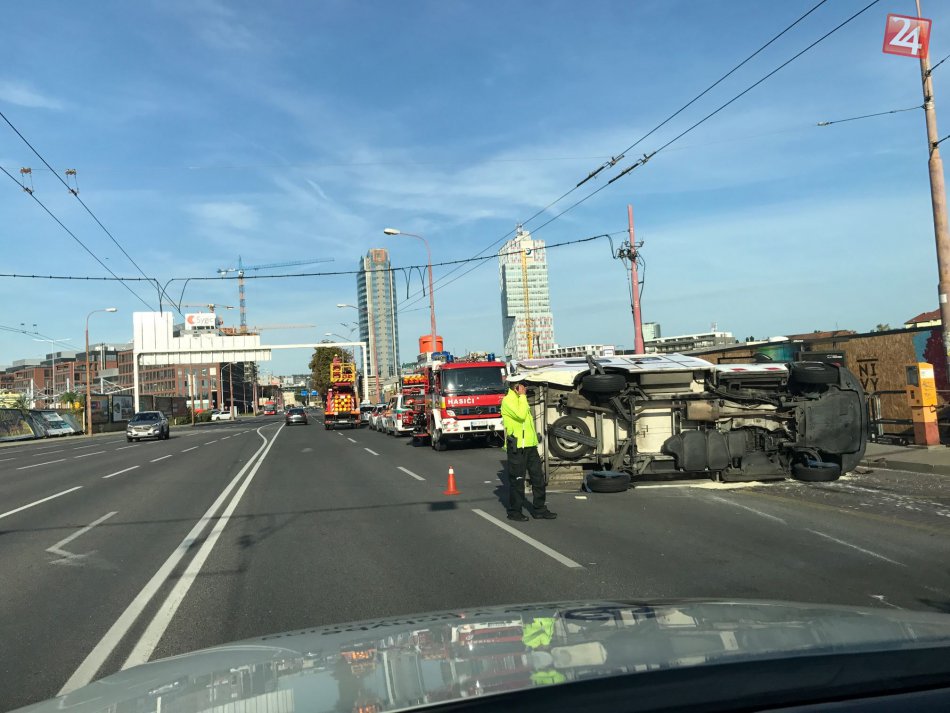Galéria k článku Pri dopravnej nehode v Ružinove sa prevrátila sanitka