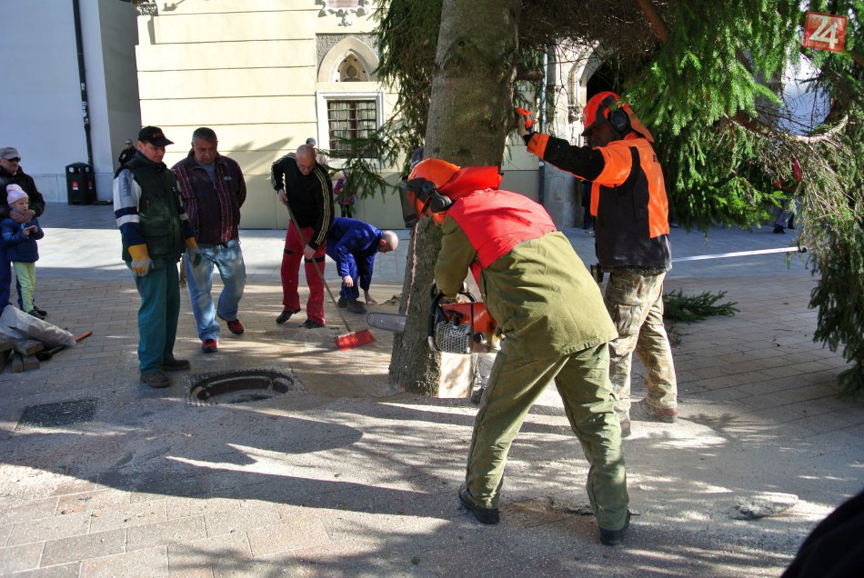 Galéria k článku VIDEO: Na Hlavnom námestí sa týči sedemnásťmetrový vianočný stromček. Toto je ON