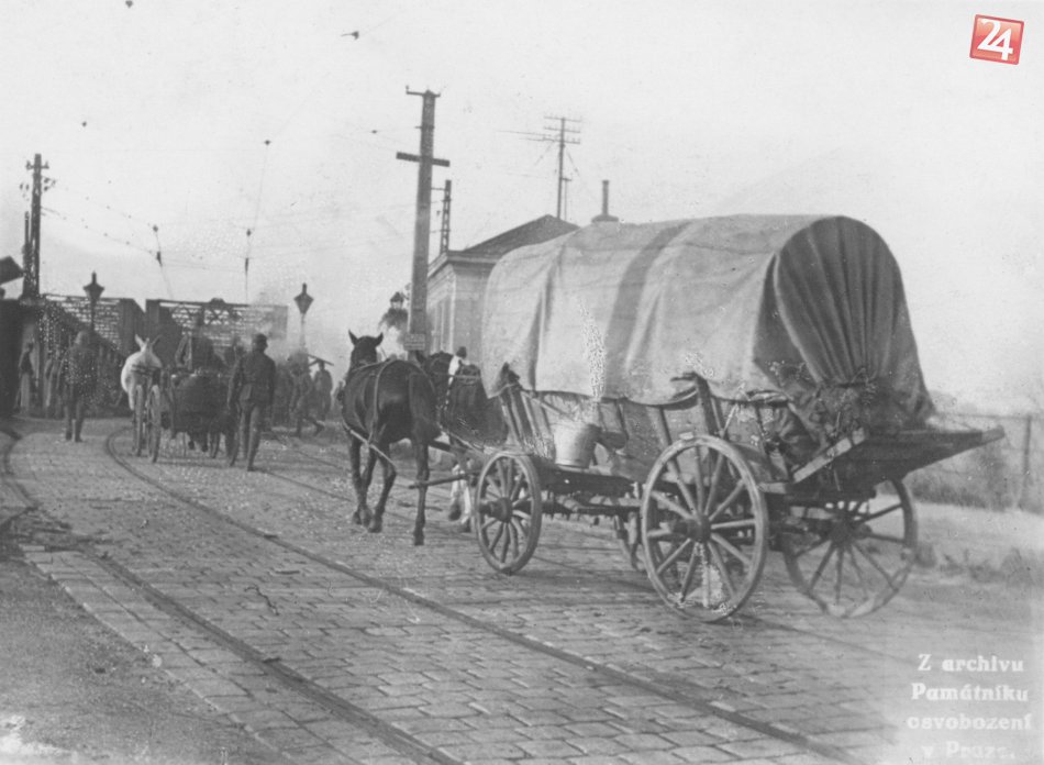 Povozy ráno 14. 8. prechádzajú Starým mostom.
