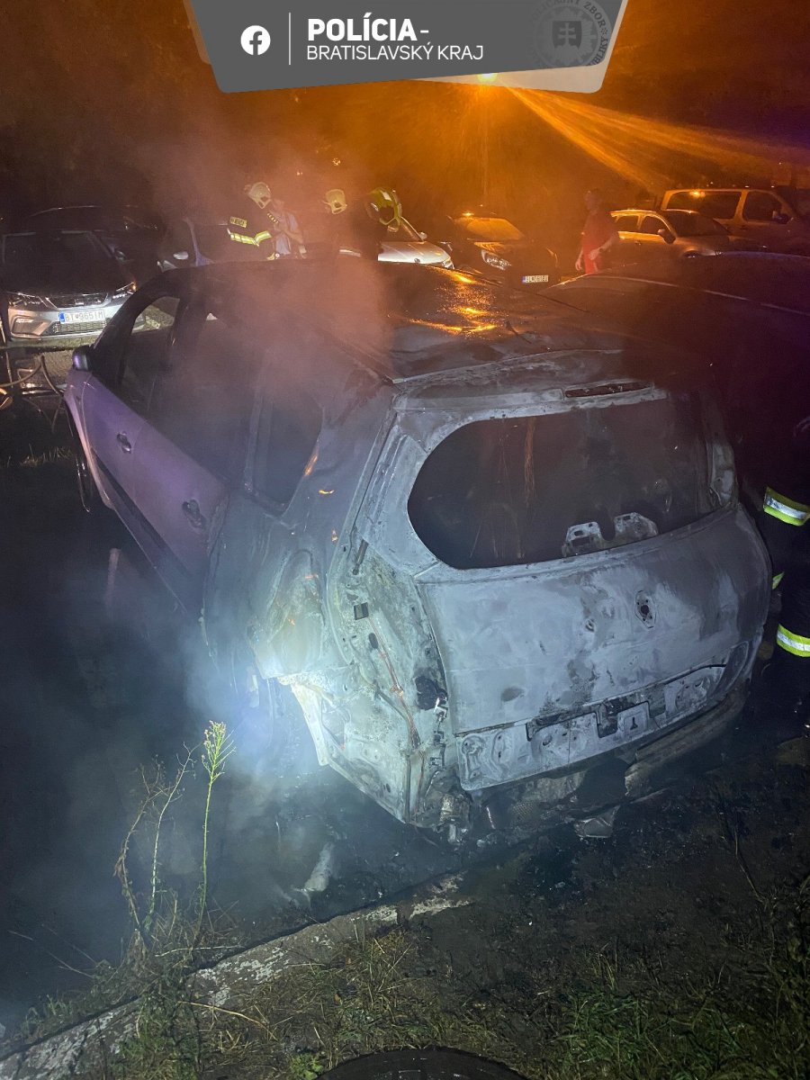Galéria k článku Nočný POŽIAR v Ružinove: Plamene ZNIČILI dve autá! FOTO