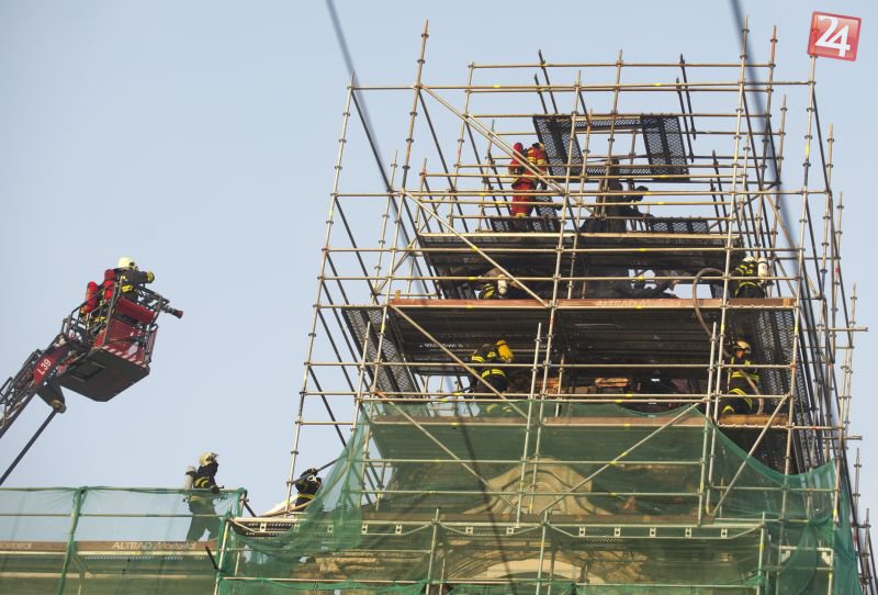 Galéria k článku Požiar v centre mesta. Horela strecha budovy na Jesenského ulici