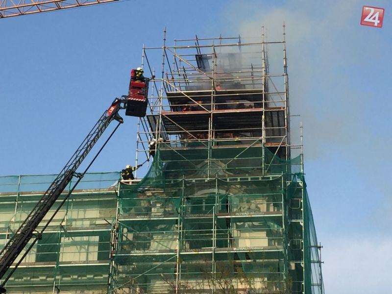 Galéria k článku Požiar v centre mesta. Horela strecha budovy na Jesenského ulici