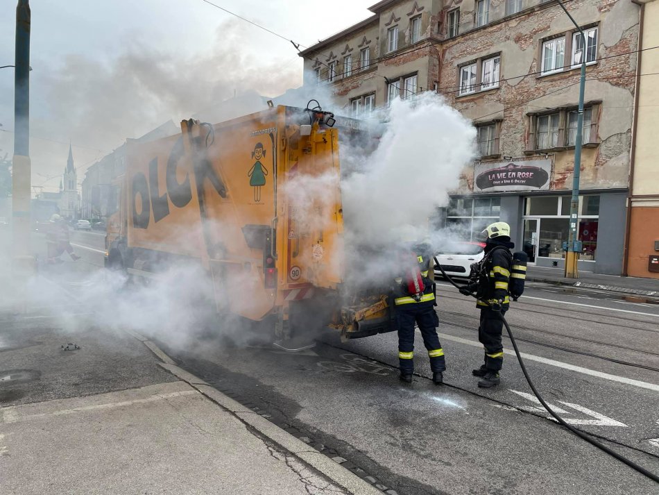Galéria k článku FOTO: Hasiči mali akčné ráno! V centre Bratislavy horelo smetiarske vozidlo