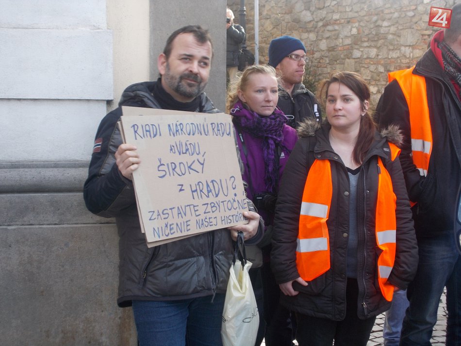Galéria k článku Ďalej neprejdete! Odkázali aktivisti stavebným autám a bránili vstup do areálu vlastným telom