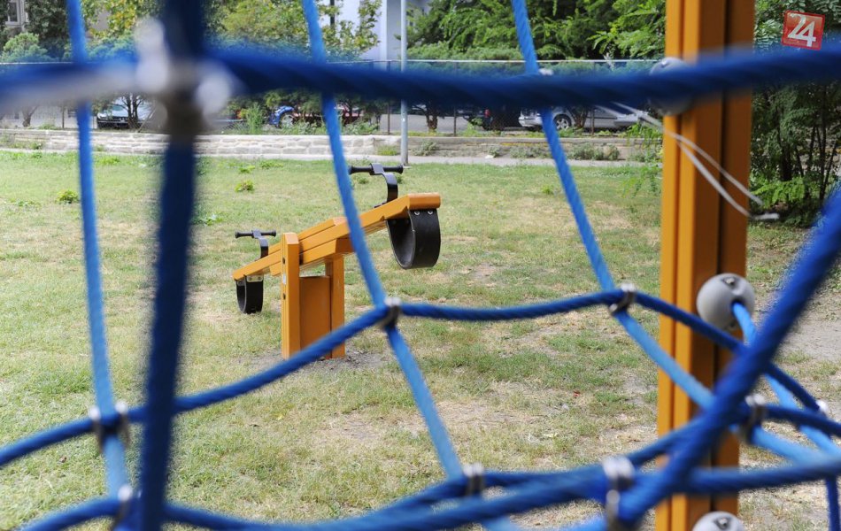 Nové preliezečky, hojdačky pre deti v parku na Šafárikovom námestí v Bratislave 4. septembra 2012.