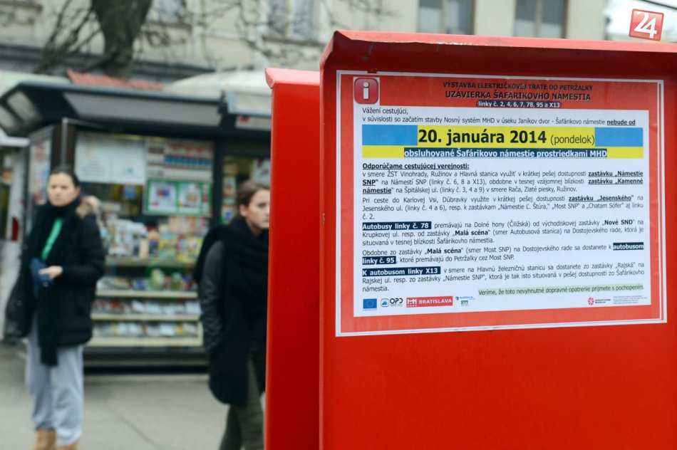 V súvislosti so začatím stavby Nosného systému MHD v úseku Janíkov dvor (Petržalka) - Šafárikovo námestie bude od pondelka 20. januára 2014 zrušená premávka električiek v úseku Vajanského nábrežie, Šafárikovo námestie a Štúrova ulica.