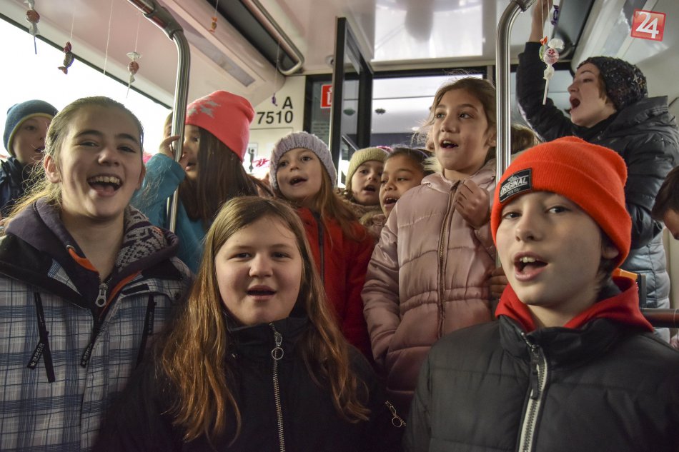 Galéria k článku Narodeninového vodiča električky prekvapili deti zo speváckeho zboru