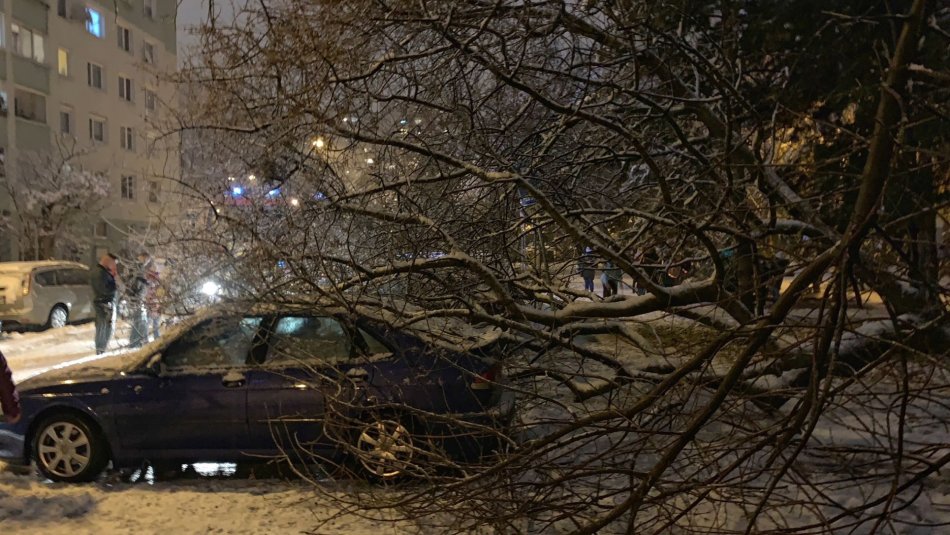 Galéria k článku Snehová NÁDIELKA páchala škody: Na Ševčenkovej zavalil strom autá! FOTO
