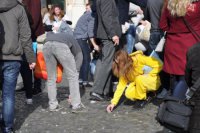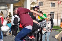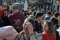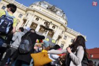 Pred starou budovou Slovenského národného divadla sa strhla vankúšová bitka.