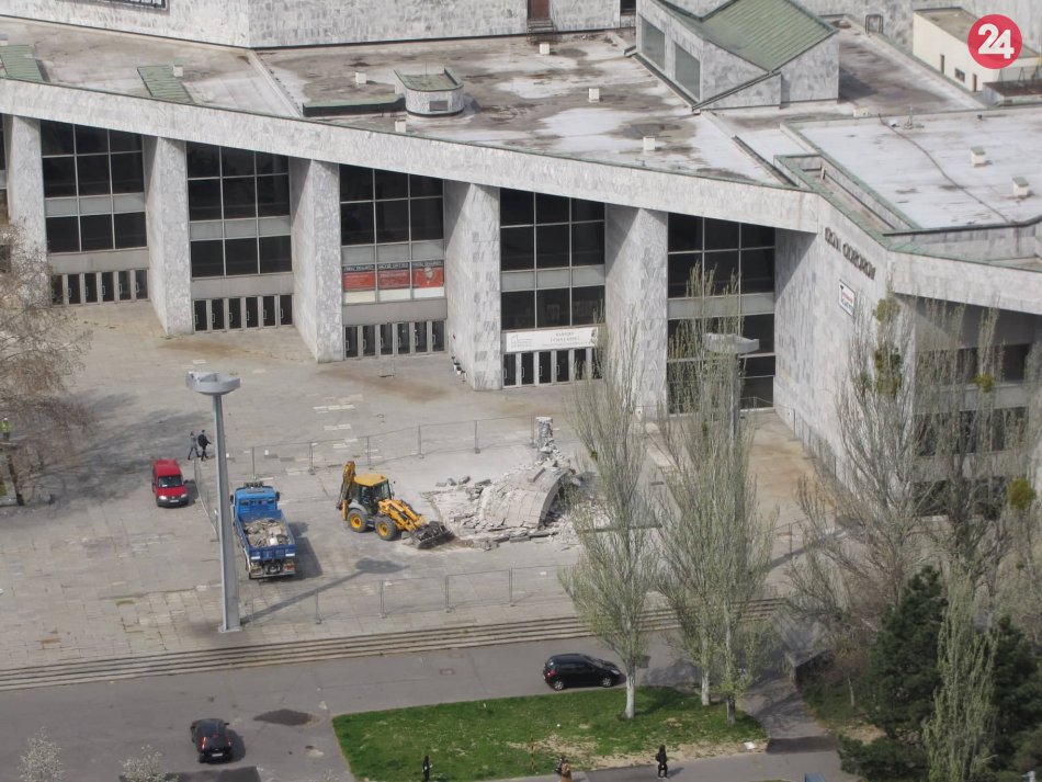Galéria k článku VIDEO: Z Istropolisu je už len silueta. Skelet budovy rozoberajú BÚRACIE stroje