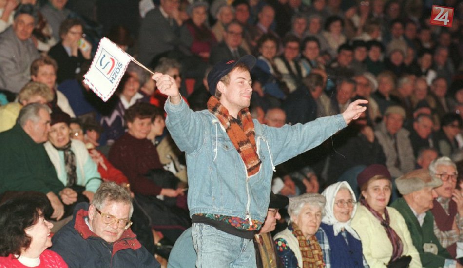 Záber z mítingu HZDS v hale na Pasienkoch, 5. február 1998.