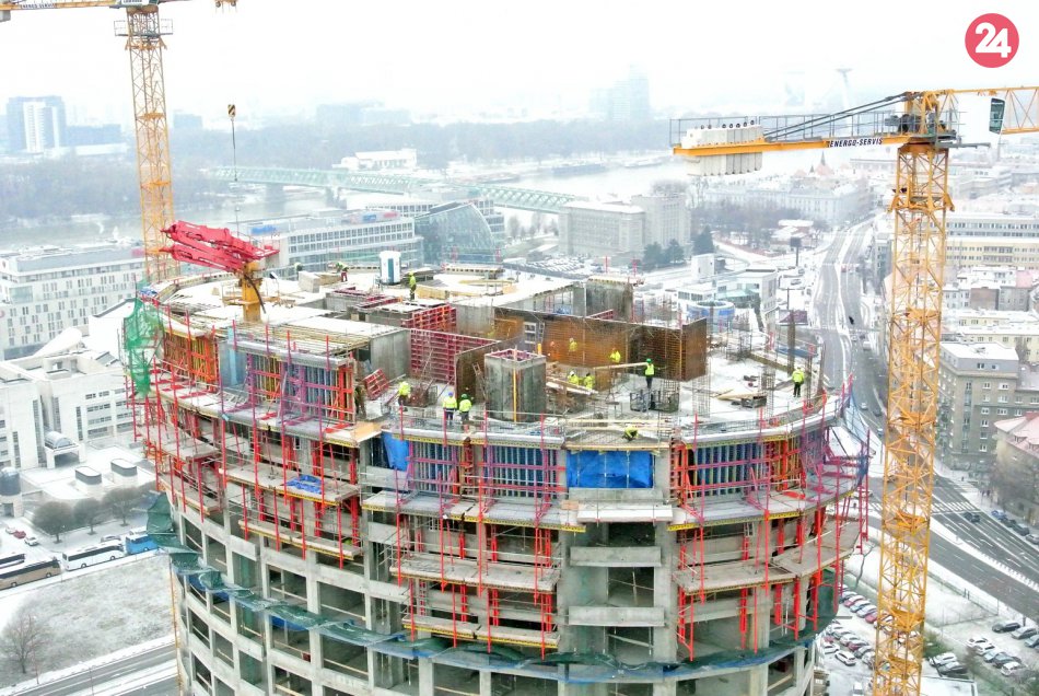 Galéria k článku FOTO + VIDEO: Sky Park dosiahol najvyššie podlažie. Ponúka výhľady na dominanty mesta