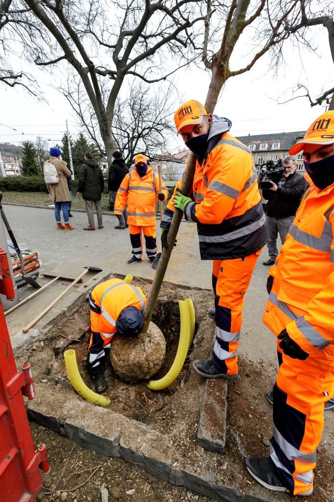 Galéria k článku Pred Hlavnou stanicou sa rúbalo aj sadilo. Námestie zdobí tucet nových stromov, FOTO, VIDEO