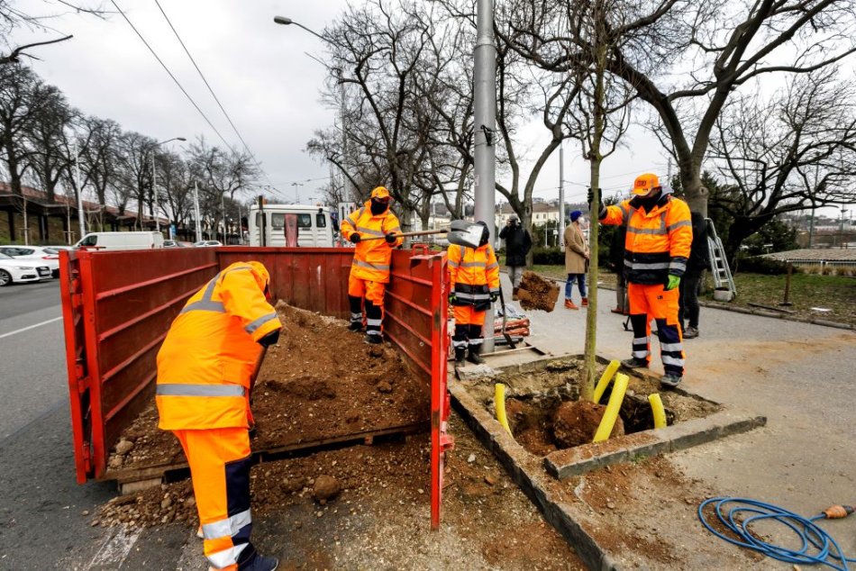 Galéria k článku Pred Hlavnou stanicou sa rúbalo aj sadilo. Námestie zdobí tucet nových stromov, FOTO, VIDEO