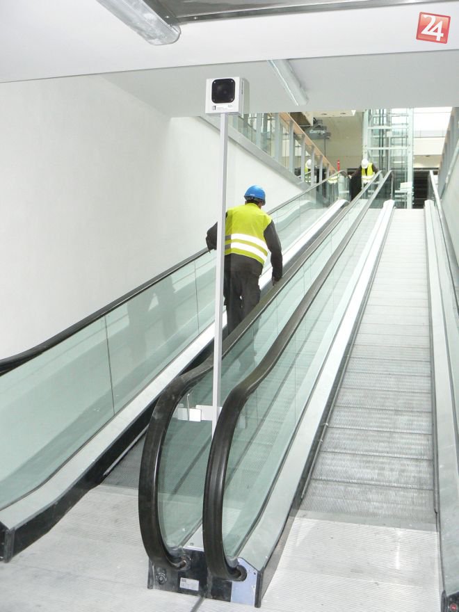 Správne umiestnenie majáka na pohyblivých schodoch.