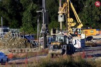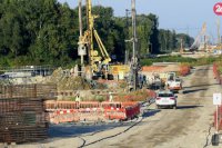 Pokračujúca výstavba diaľnice D4 Jarovnice-Rača, samostatný úsek D4-2 Rusovce Ketelec. Na snímkach stavebné práce v priestore štrkoviska Zemník.